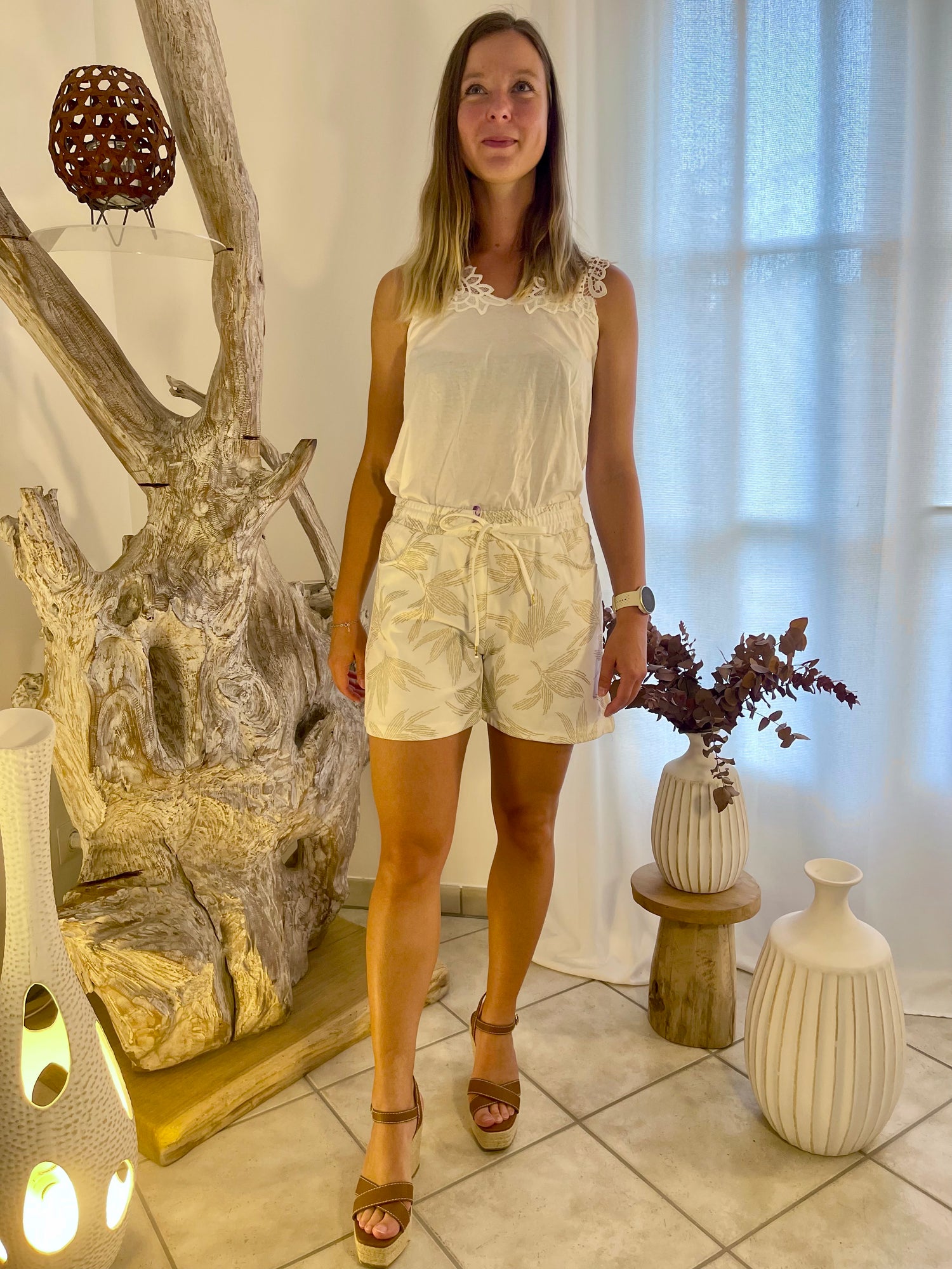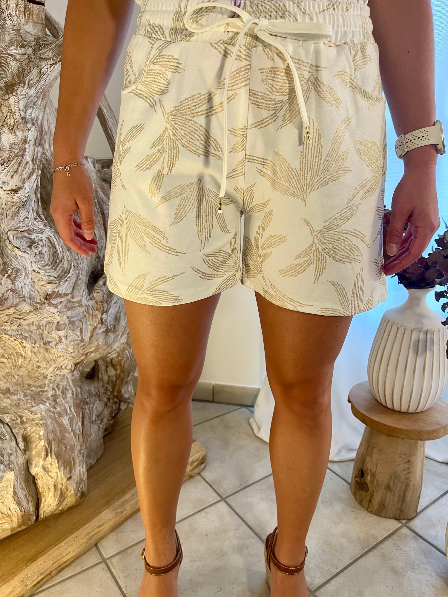 Short court motif à plume.